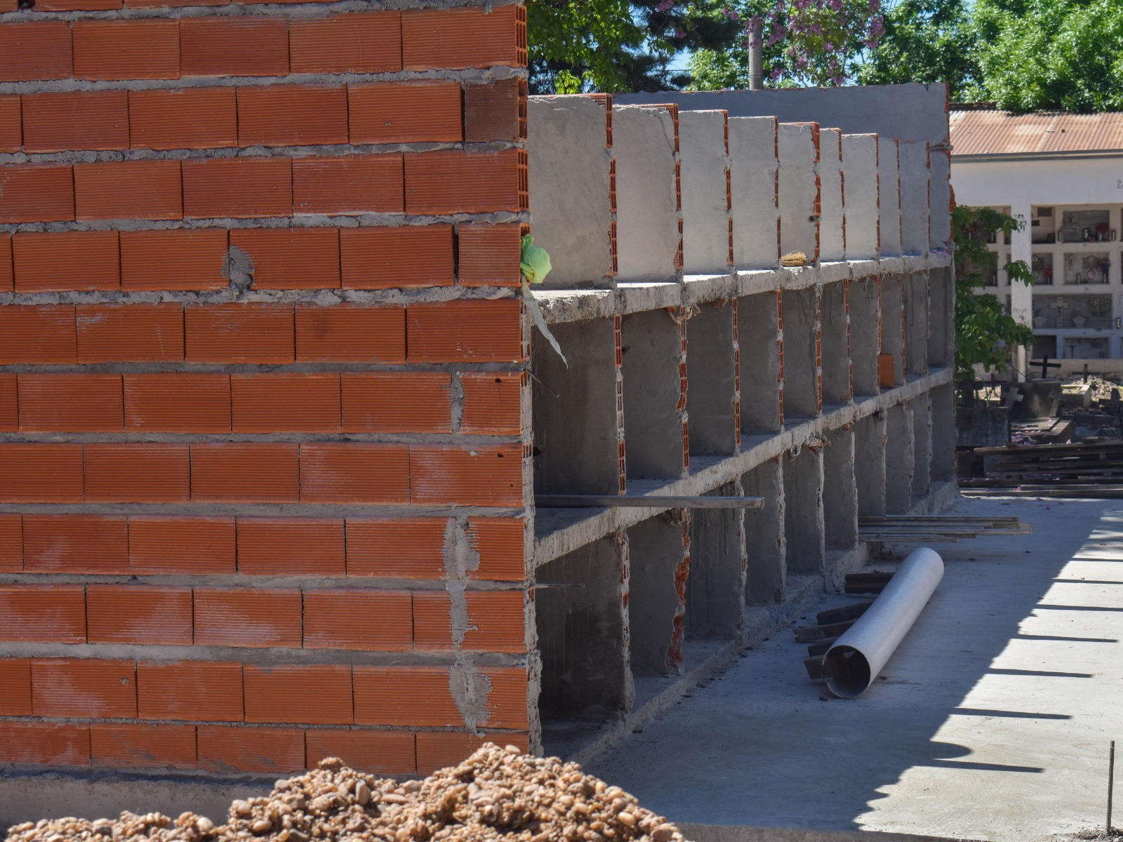 Actualmente se avanza con la construcción de otros 100 nichos en el cementerio municipal, que se realizan con fondos propios y mano de obra adjudicada mediante un concurso de precios efectuado el 19 de junio pasado, otorgando la obra a López Construcciones por un presupuesto de $14.840.000 y con un plazo de ejecución de obra de 120 días corridos desde el inicio de la misma. La obra está constituida por 50 nichos por cada cara y una galería.