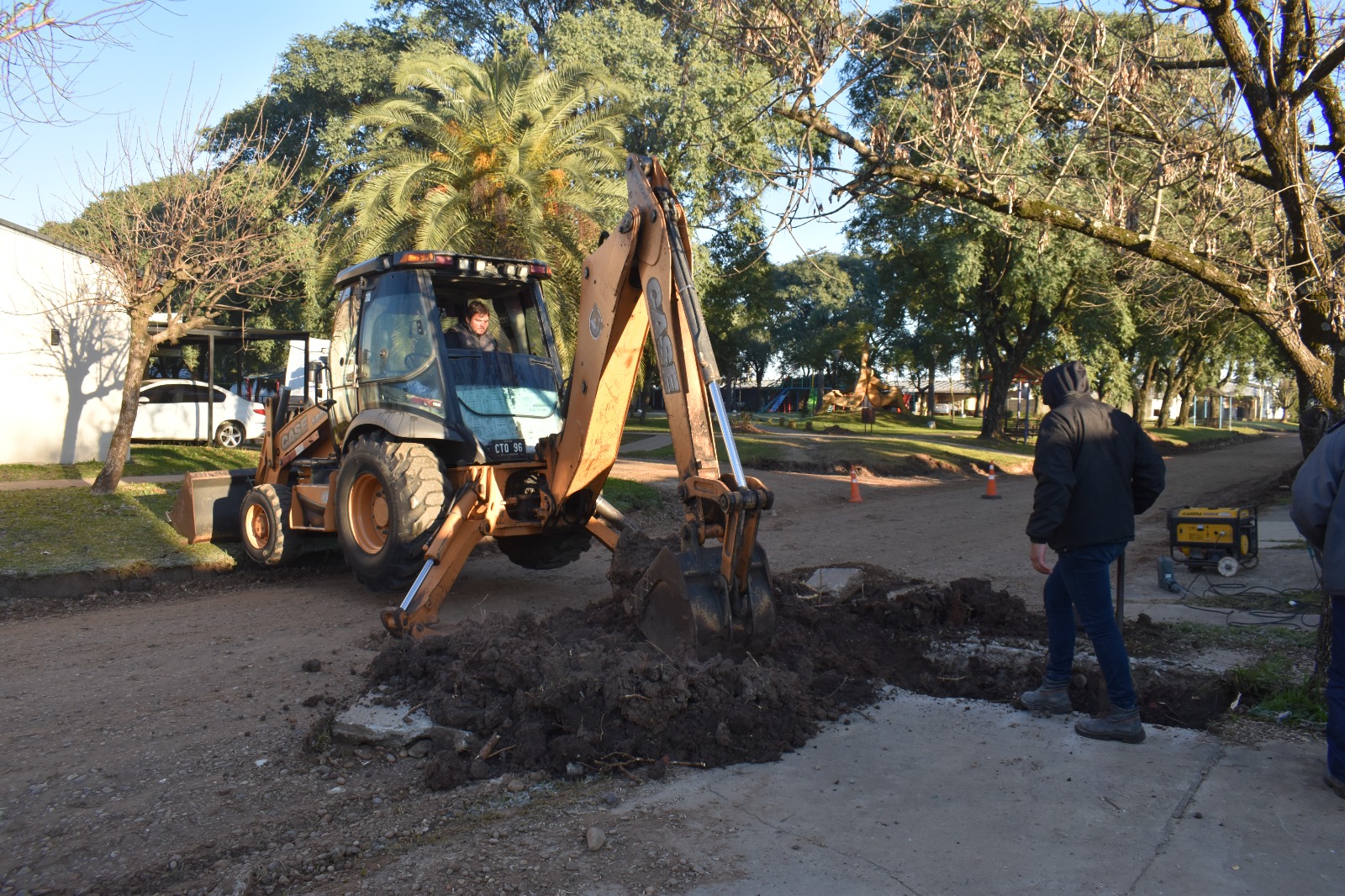 Allí se comenzaron a realizar los trabajos de recambio de conexiones establecidas en la red de cloacas y luego se efectuará lo propio en la red de agua corriente. Realizados estos trabajos se dará inicio con el movimiento de suelo por personal municipal, colocación de suelo cal y compactado del terreno, previo a la obra de pavimentación en las dos cuadras de esta arteria de barrio Parque.