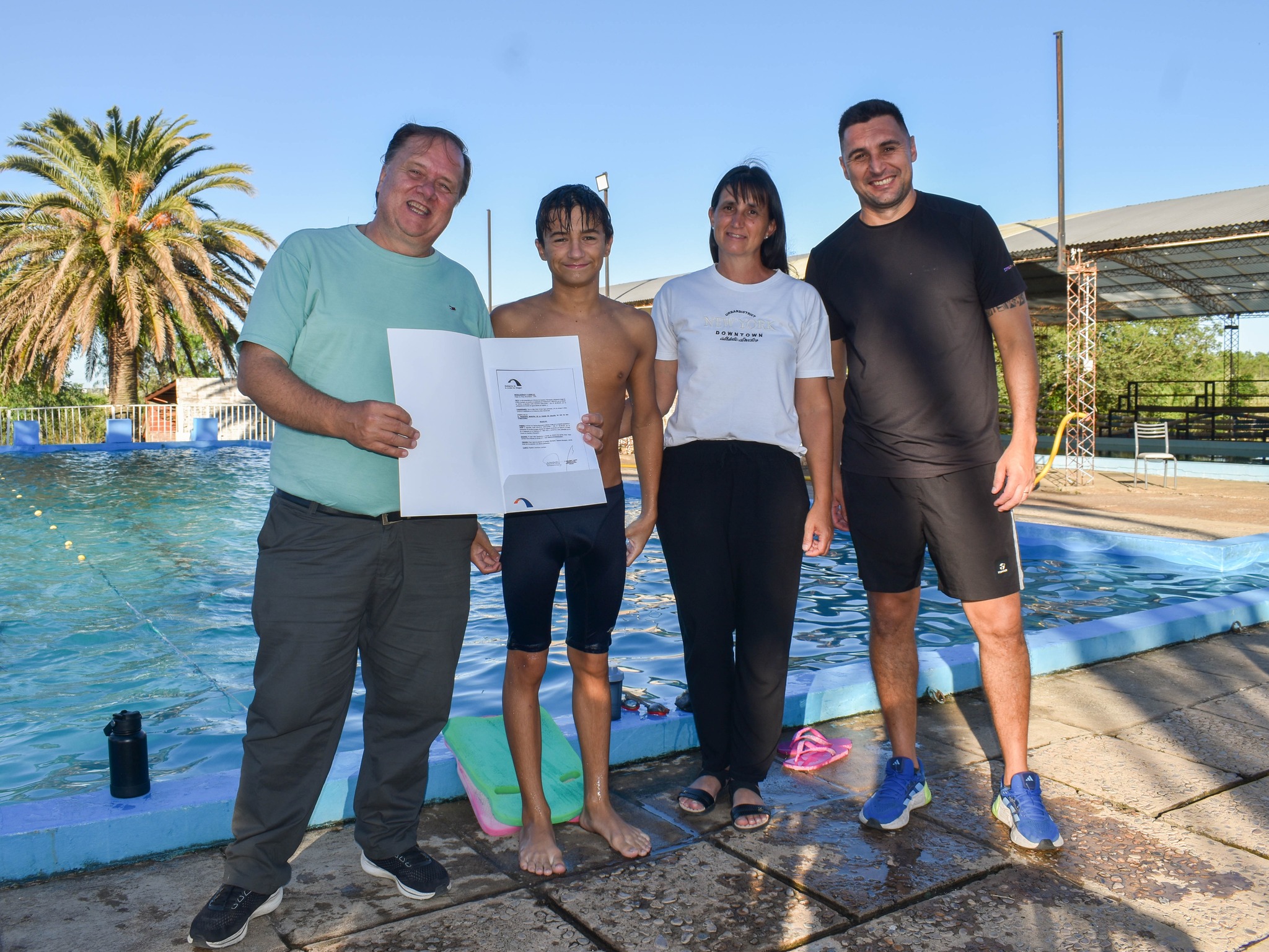 En el lugar se hicieron presentes el Intendente de Chajarí Marcelo Borghesan junto al Director de Deportes y Recreación Ramiro Galeano, quienes fueron recibidos por los deportistas becados y sus entrenadores. La entrega de la beca deportiva a Juan Agustín Carlazara se hizo por el importe equivalente a 100 Valores Municipio, en reconocimiento por su participación en circuitos de aguas abiertas de natación. Juan tiene 15 años de edad y es deportista del Club Vélez Sarsfield de nuestra ciudad.