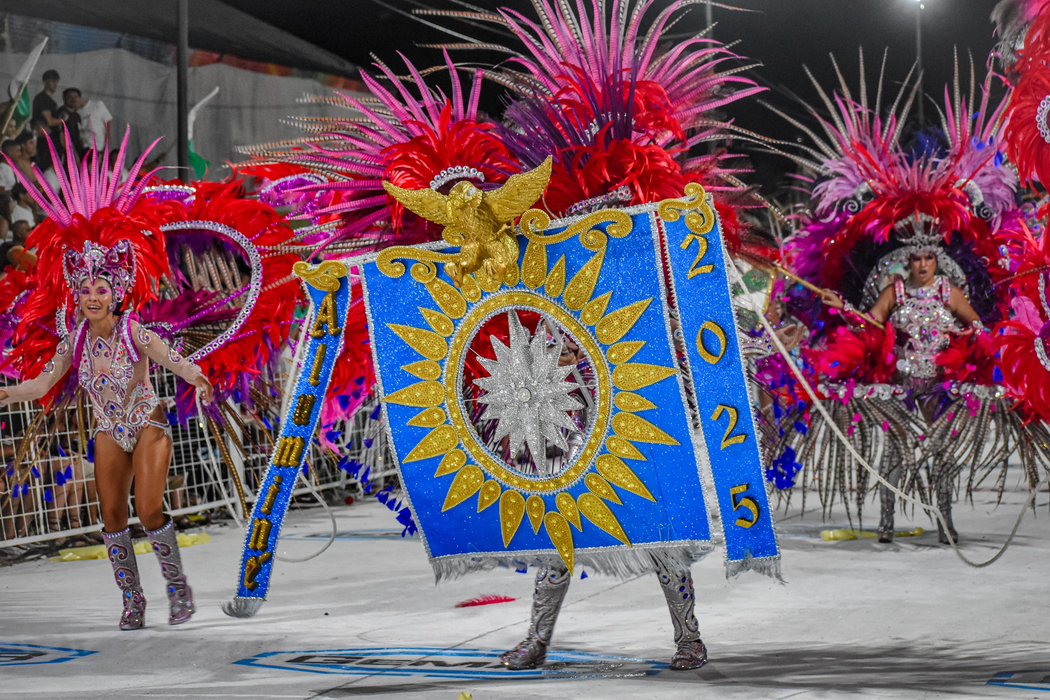 El club 1 de Mayo será representado por la comparsa Aluminé y la temática elegida para este año es “Voces ancestrales”. Su Reina de la comparsa mayor es Lucía Furlong; la Reina de comparsa menor Sol Leis Calgaro. La Reina de batería mayor es Ariana Bravo; la Reina de batería menor Sofía Sosa. La Bastonera de comparsa mayor es Florencia Fabián; la Bastonera de comparsa menor es Catalina Marzoratti. La Bastonera de batería es Isondu Pecker. La Embajadora mayor es Giuliana Roncaglia; la Embajadora menor es Justina Saires Costa. El Porta estandarte es Marcos Lima, las Cordoneras son Gisela Méndez y Micaela Vago. El Maestro de sala es Ricardo Rolón y la Porta banderas es Gisela Garate.